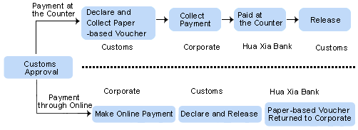 Corporate customers only need to log in to China e-Port website in the office, issue payment instructions as required. Hua Xia Bank will directly deduct the amount from corporate account after receiving the instruction. Goods can be cleared through the customs after successful payment.