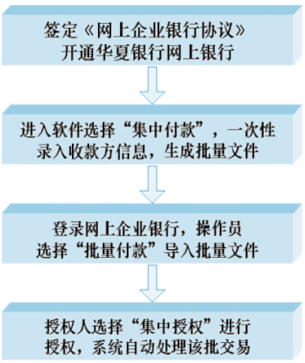 2、付款当日,客户向银行提交一张支票(或电汇凭证)和相应的支付清单即可办理。其中,支票金额为付款金额总计,支付清单中列明各收款人名称、账号、开户行、付款金额、用途等明细。