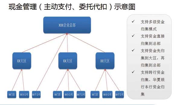 通过在线支付、委托扣款等方式实现资金归集。
