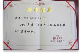 2011年七家分行在政府、监管部门小企业金融服务相关评选活动中获得殊荣。